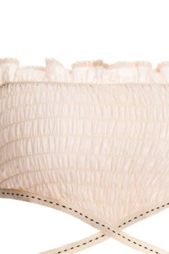 A new silhouette and a key look! The Amari crop top has a honeycomb fabric and straps around the body. The ideal piece for a day and night look. Match with the Tatum pants. This silhouette is embroidered!