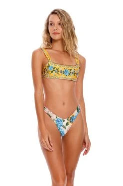 The Avy bikini bottom made with eco fabric is reversible, low rise with the perfect fit. The ideal bottom for a high-leg look. Reversible to a second print for more style options. Ideal for tanning. With a localized print. Agua Bendita is inspired by tapestries, wallpapered walls, tiles, and mosaics that contrast with hand-painted vases.