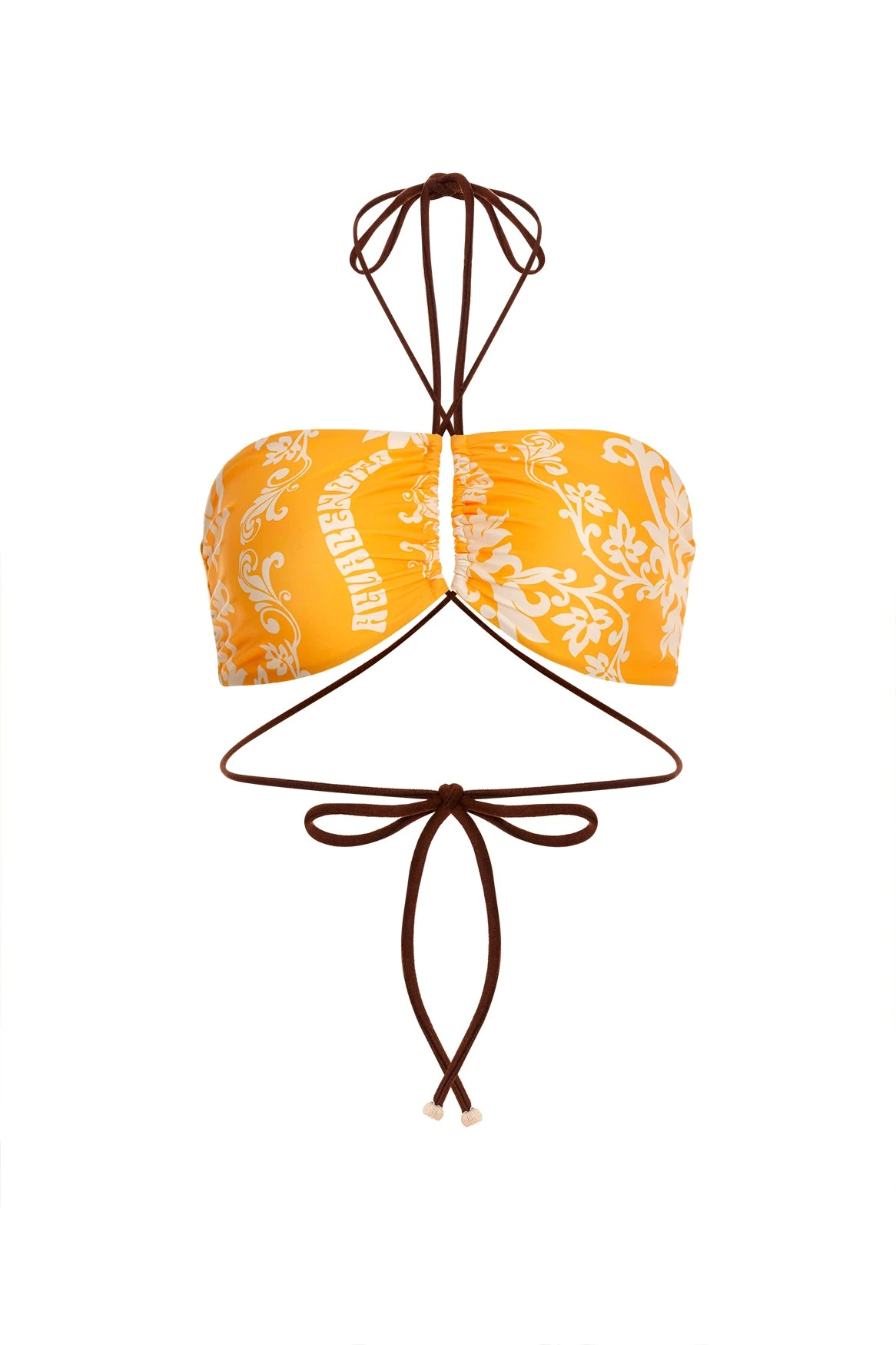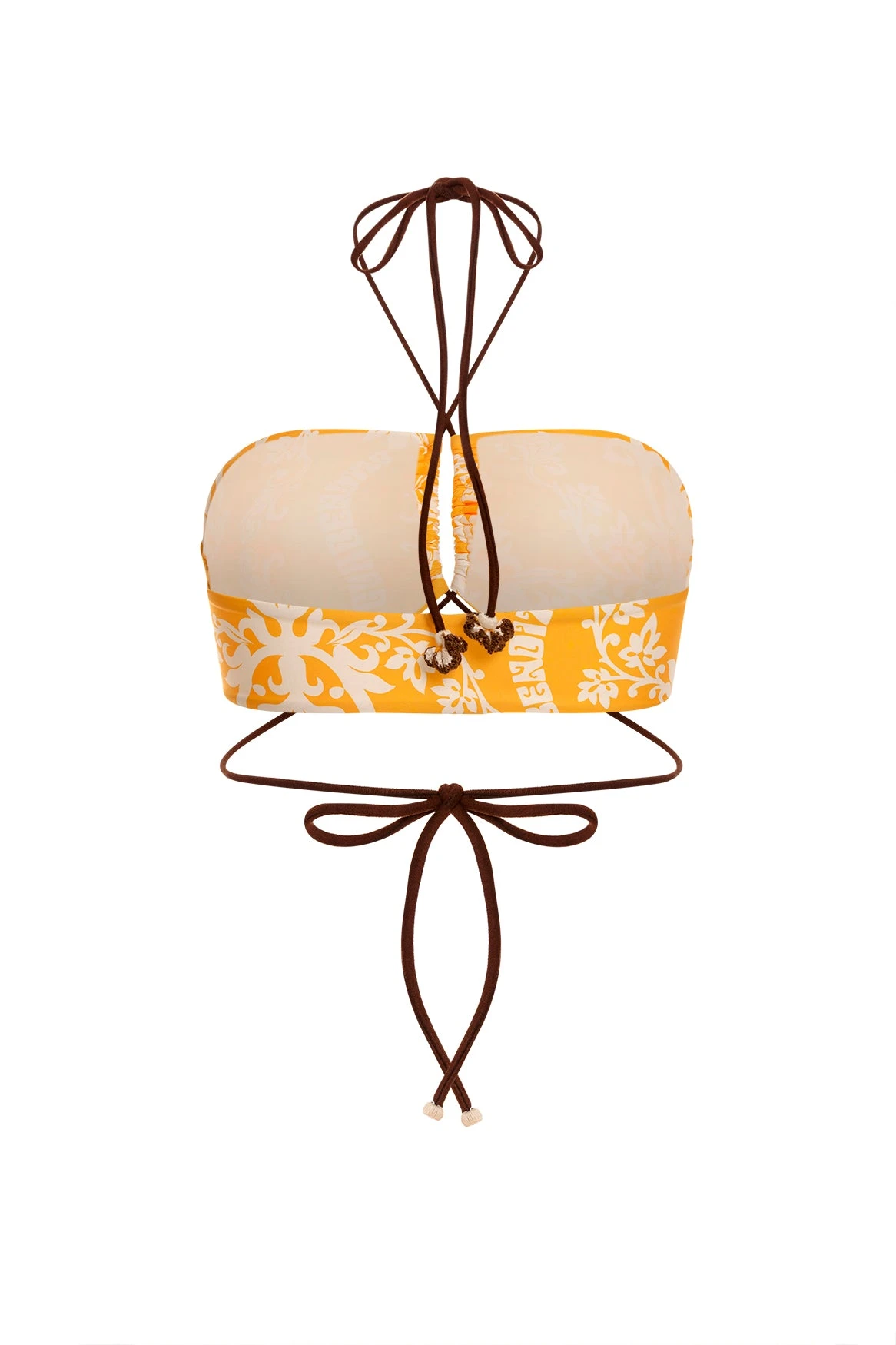 Our open bandeau top has adjustable front and back ties for a personalized fit. The handmade crochet flowers and beading on the straps add a playful touch. Pair it with high-waisted bottoms for a trendy look.