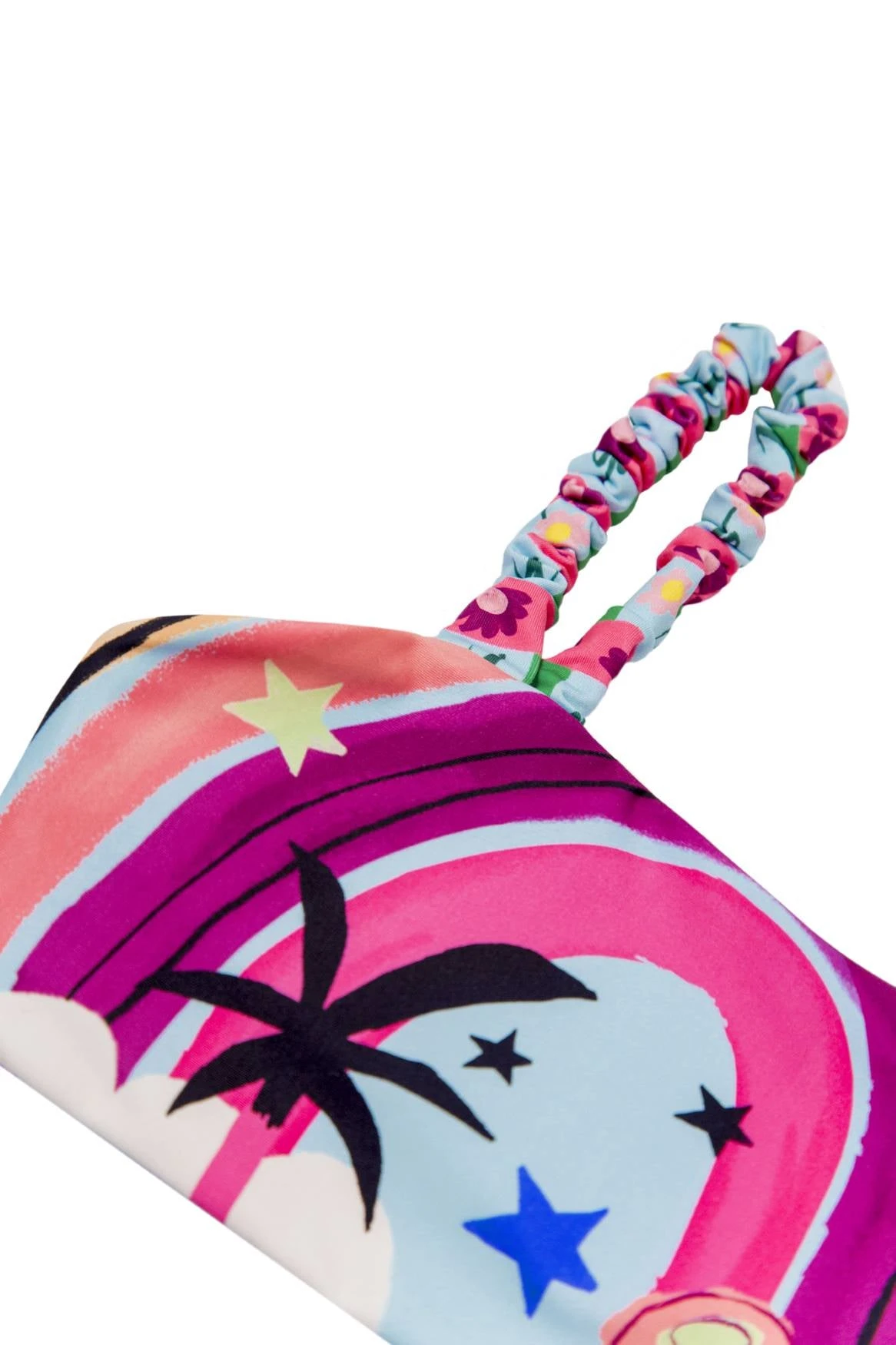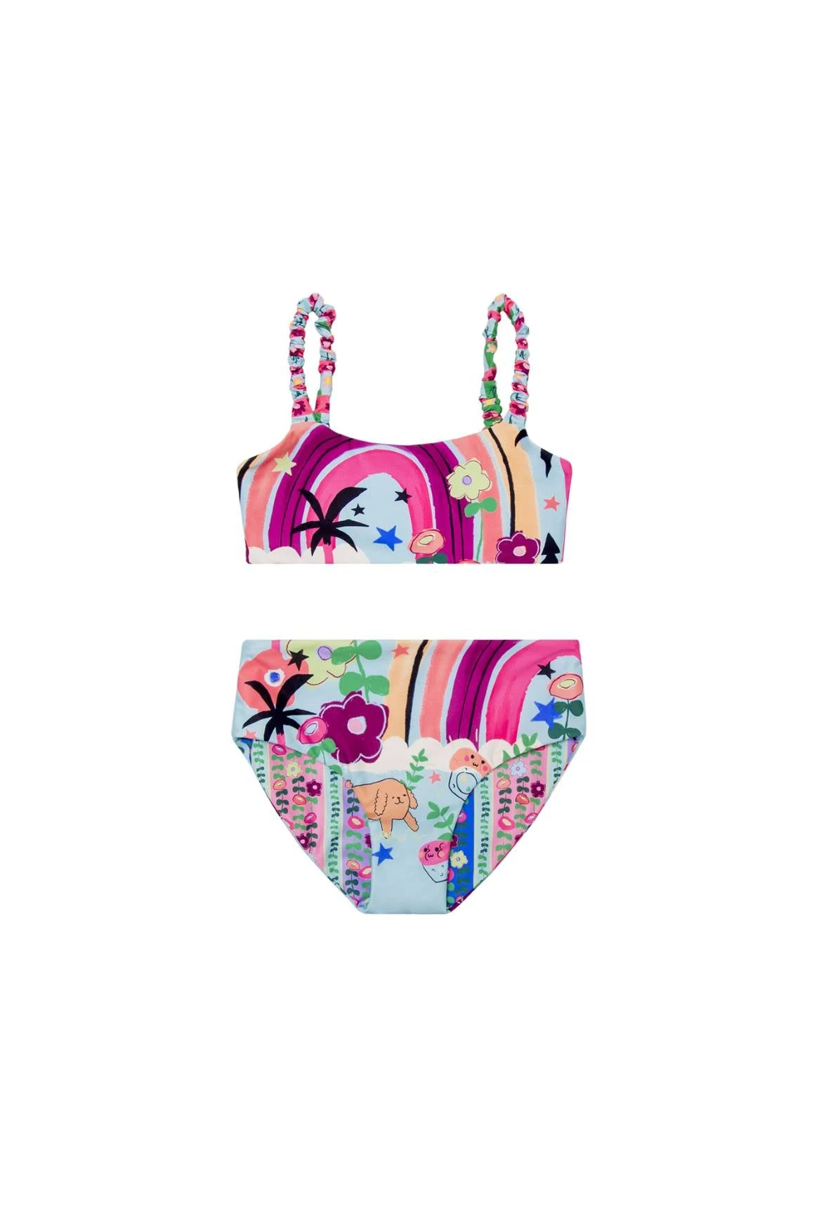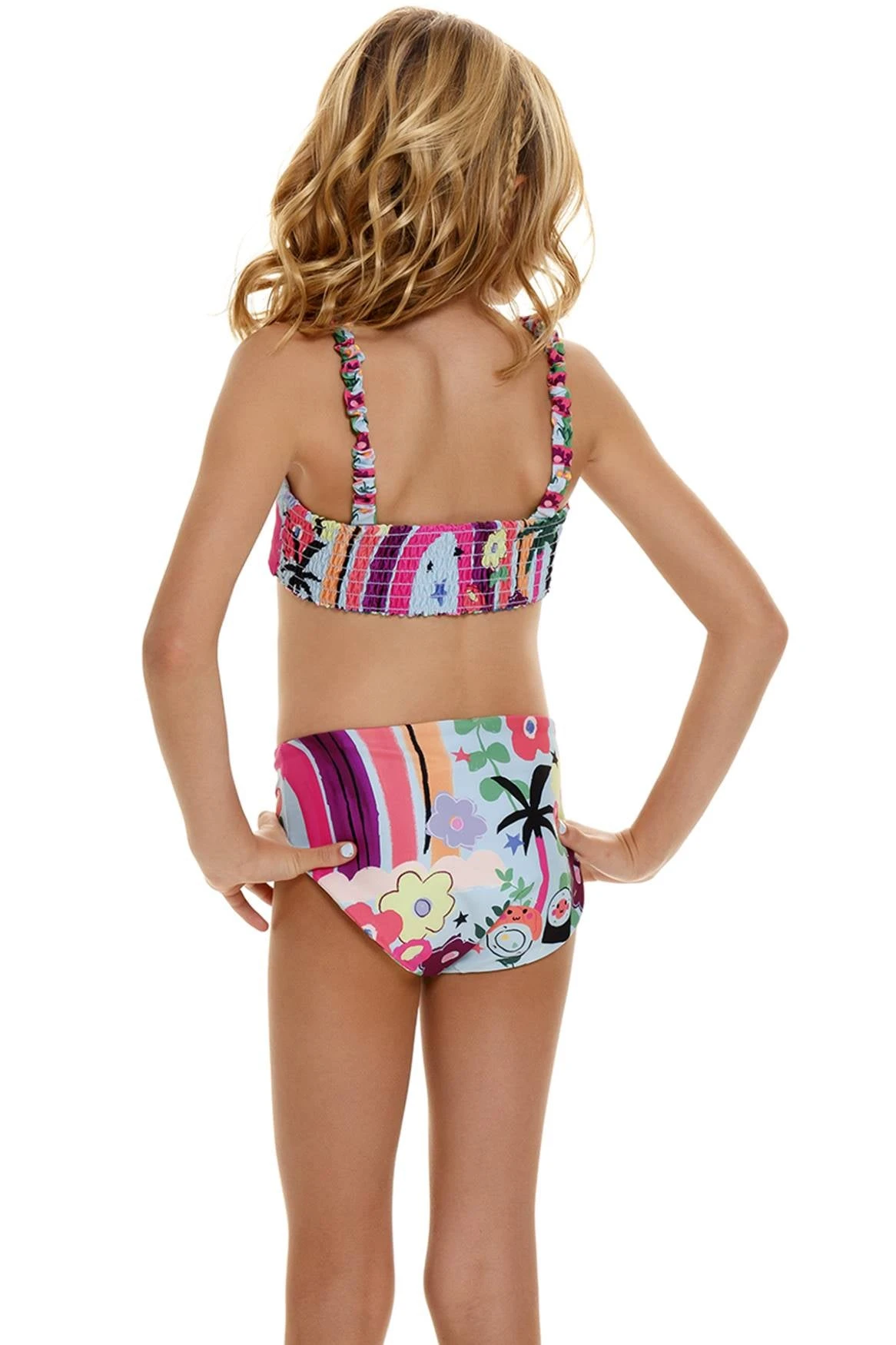 The reversible bikini offers a sporty secure fit, complemented by the back smocking for easy adjustability. With ruched straps adding a touch of elegance, this bikini has two different print looks to enjoy. Paired with the reversible high waist bottom, the endless mix-and-match possibilities make it a must-have for stylish beach or pool days.