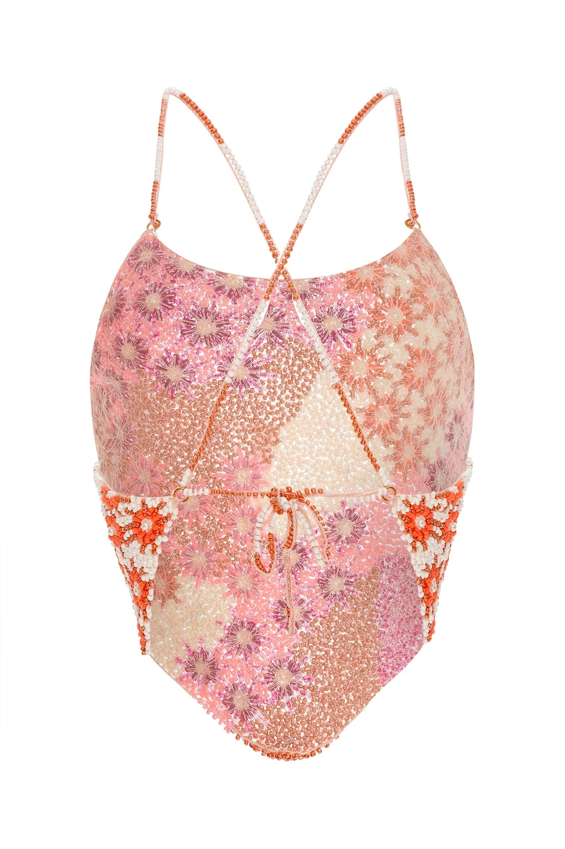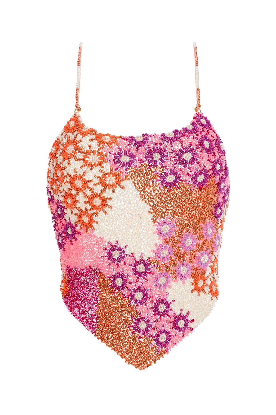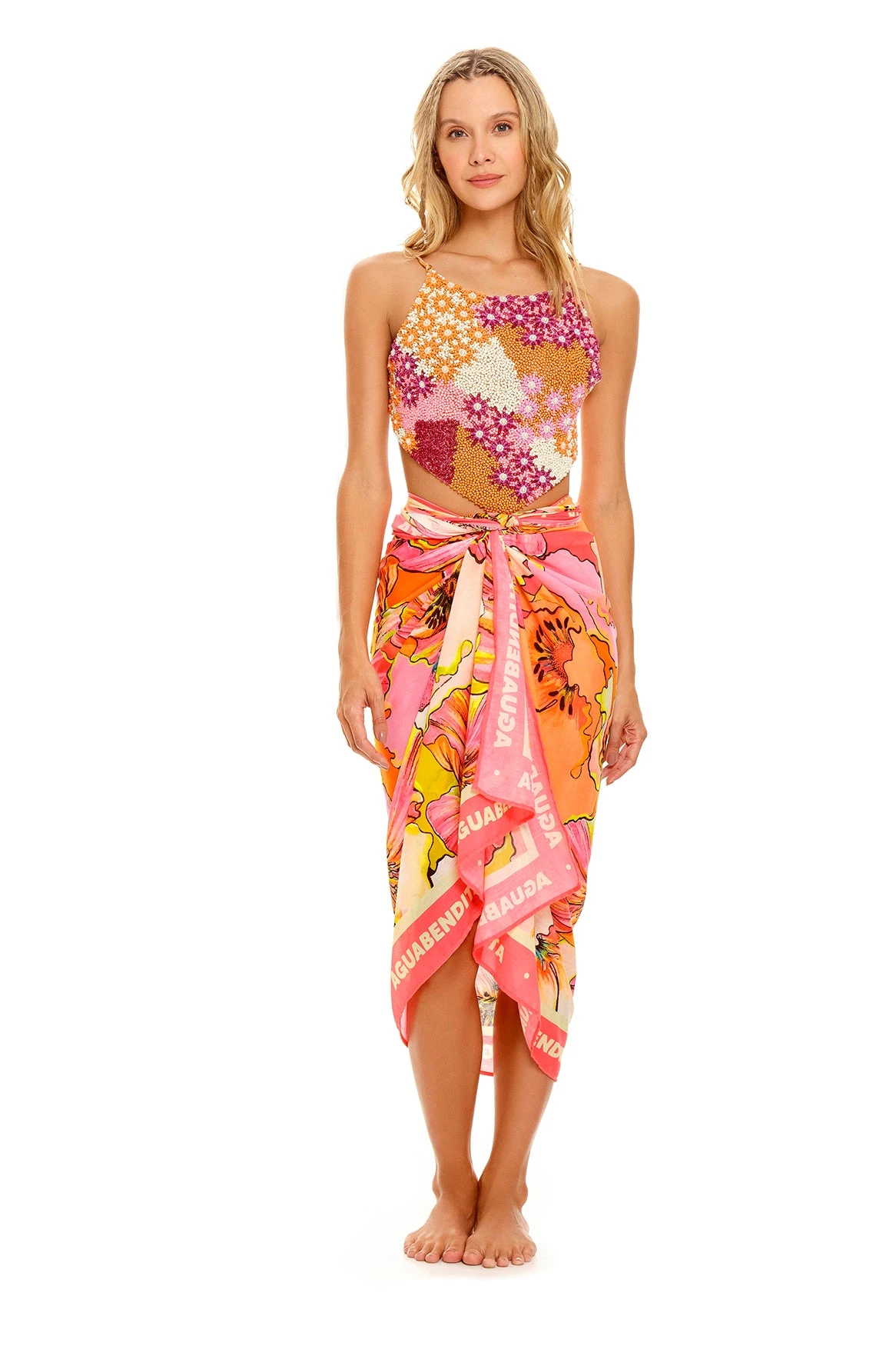 Our signature fully beaded crop top offers a handcrafted look with embroidery and beading. Featuring adjustable back strap details, wear it with high-waisted bottoms for a chic beach look.
