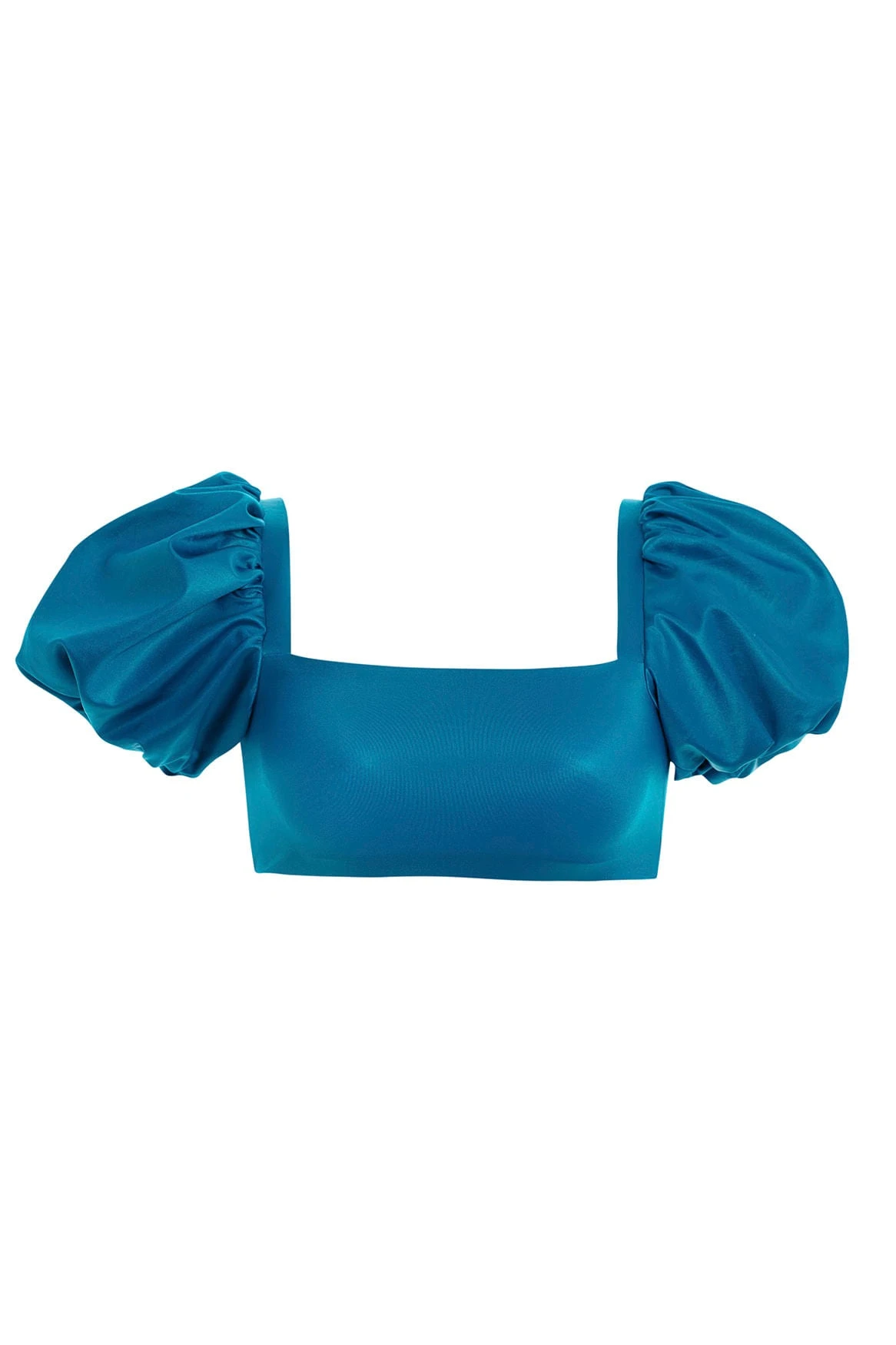 Key Item and one of our best sellers! Our Calista Balam bikini top has been our iconic piece throughout time. Oversized balloon sleeves adjust on the arm, a soft textured fabric perfectly shapes and blends into your body, and a sophisticated squared neckline. A statement piece. It is made with 78% Polyamide and 22% Elastane.