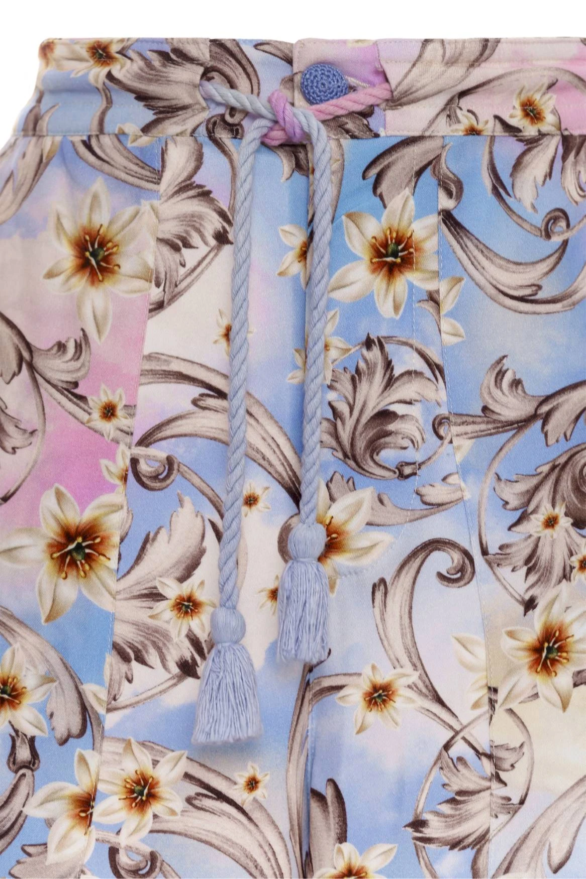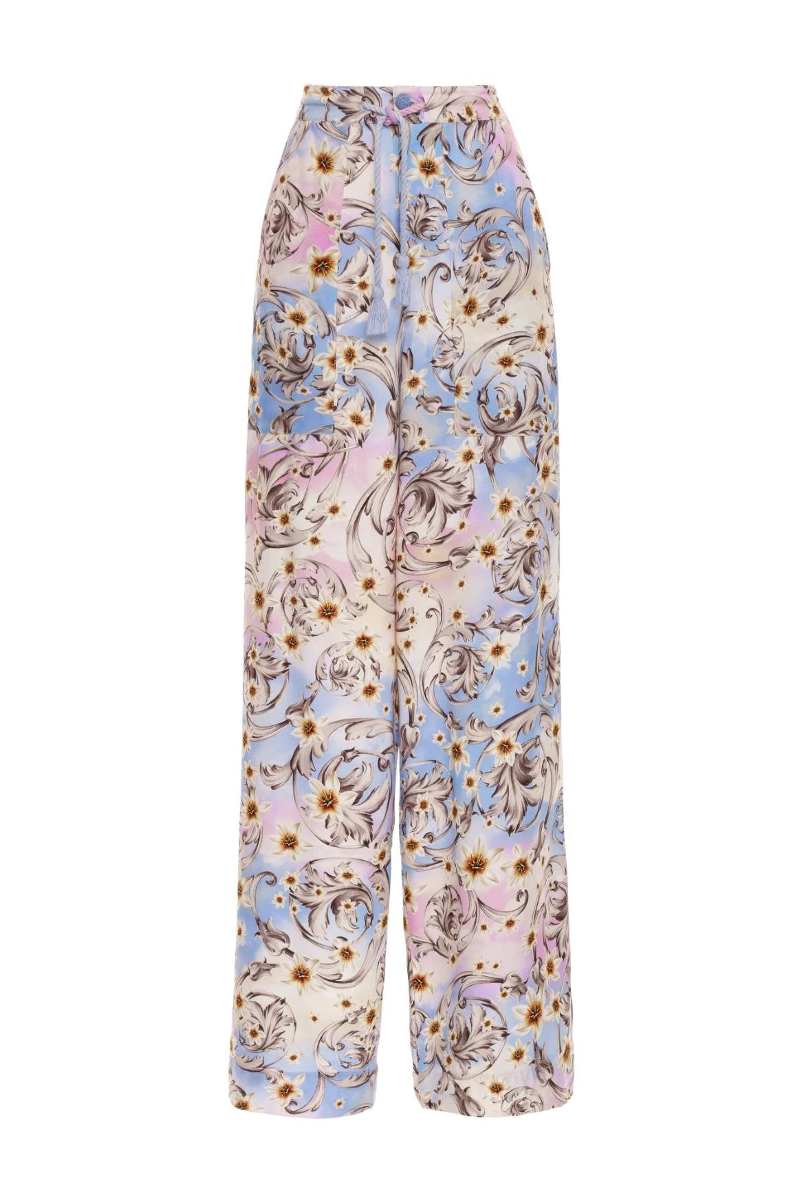 Experience relaxed elegance with the Caroline Pants. Adorned with flowing sunset colors in our artist-designed romantic flower print, the wide-legged pant boasts a handcrafted waist tie and smocking at the back for an adjustable, flattering fit.