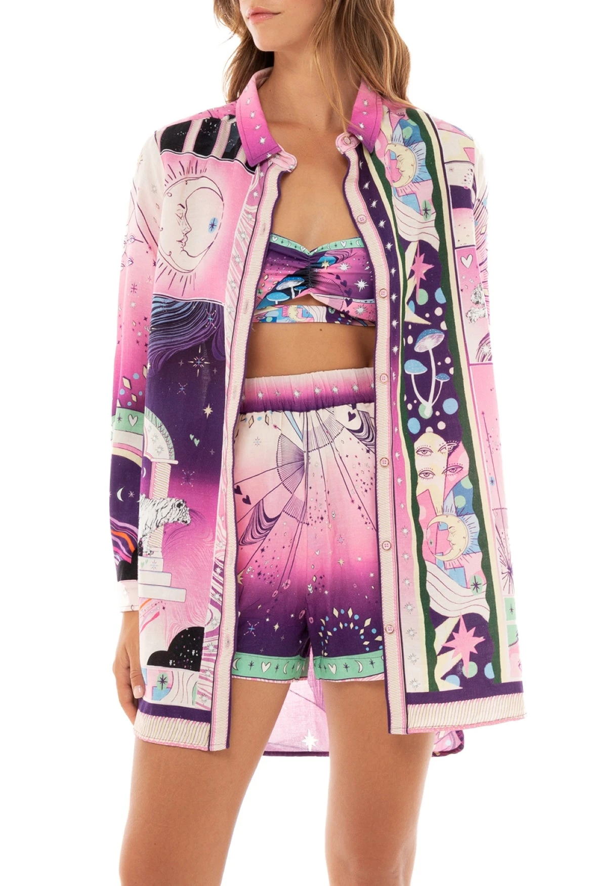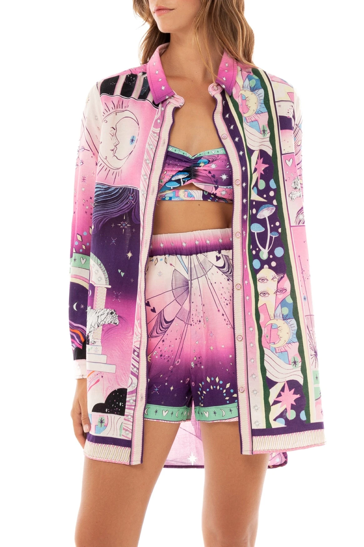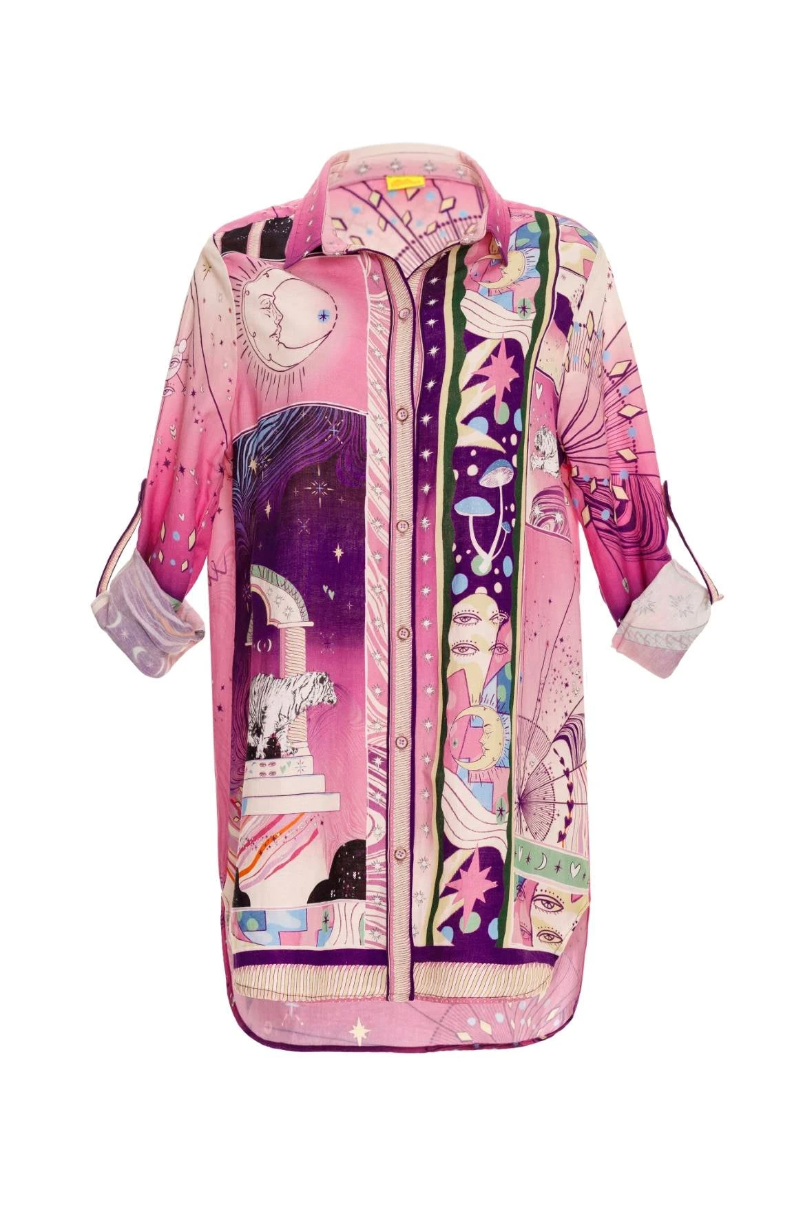 Our best-selling Crystal Shirt is an essential piece for every wardrobe. This oversized summary-front shirt, adorned with artisan-designed delicate cosmic print, is a versatile choice. It’s perfect for mixing and matching with various pieces or wearing as a cover-up. Improve your style with a shirt that adds both elegance and character to your outfit.