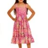 Introducing the Dolce Kids Bikini, a captivating, sporty top with a unique loop trim at the bottom, adorned with our hand-designed flowers. The reversible bottom offers multiple looks, and both pieces feature a beautiful mix of prints for a handcrafted aesthetic.