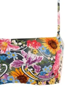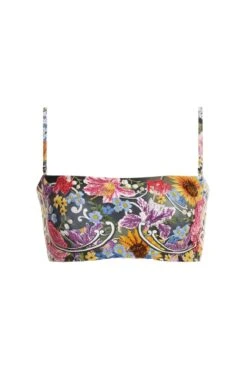 Our Georgina Bikini Top is a stunning canvas of artistry, fully embroidered by our skilled artisans. Experience versatility with removable straps, allowing you to achieve a chic strapless look. The illustrated flower print adds a touch of charm, making it the perfect piece for mixing and matching with any bottom from our collection.