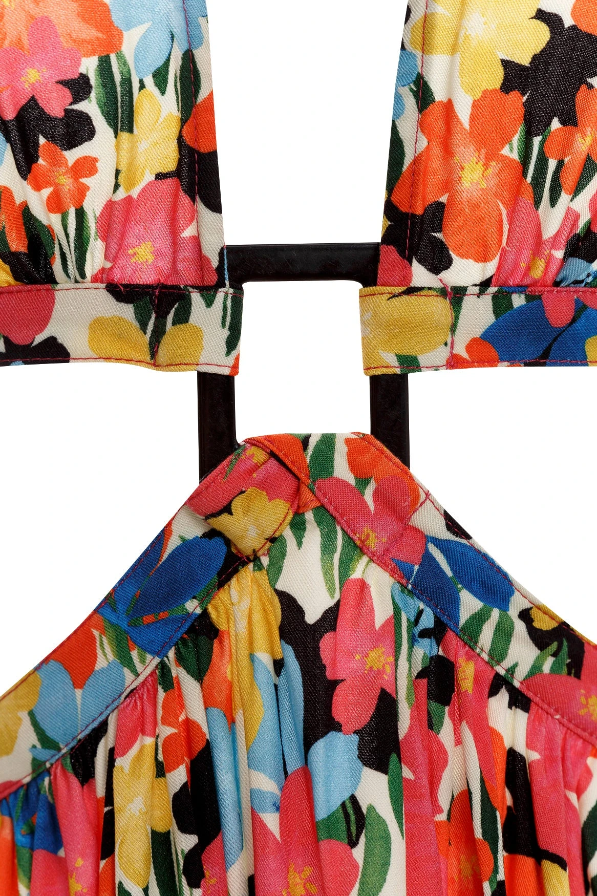 This effortless mini dress has a mix of eye-catching flowers for a tropical feel, with a center front ring that leads to the open back with adjustable ties. Wear it on its own or as a cover-up.