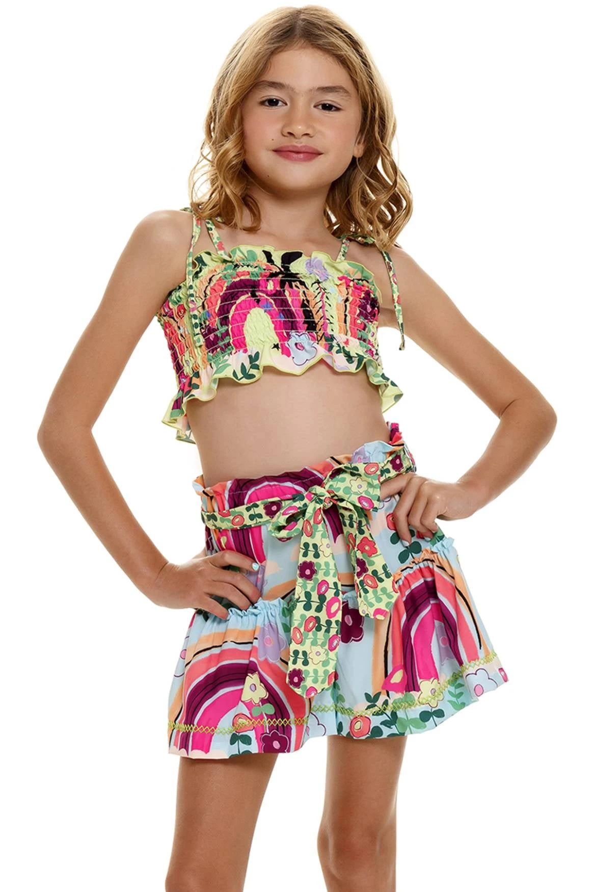 Add a touch of playfulness with the Gisele Kids Top, featuring ruffle details and an artisan-designed playful print. The crop top’s adjustable shoulder ties and smocking offer a secure and flattering fit, allowing your little one to enjoy endless beach or poolside fun in style.