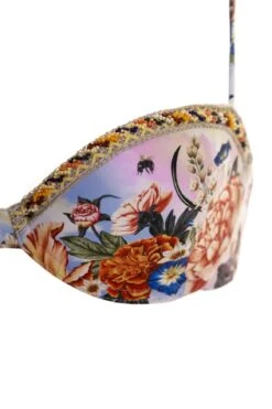 Elevate your beach style with the best-selling Rene Bikini Top. Adorned with artisan-designed flowers and delicate embroidery, it exudes a handmade charm. The sleek underwire and adjustable hook back provide a supportive and exclusive fit, ensuring you look and feel fabulous.
