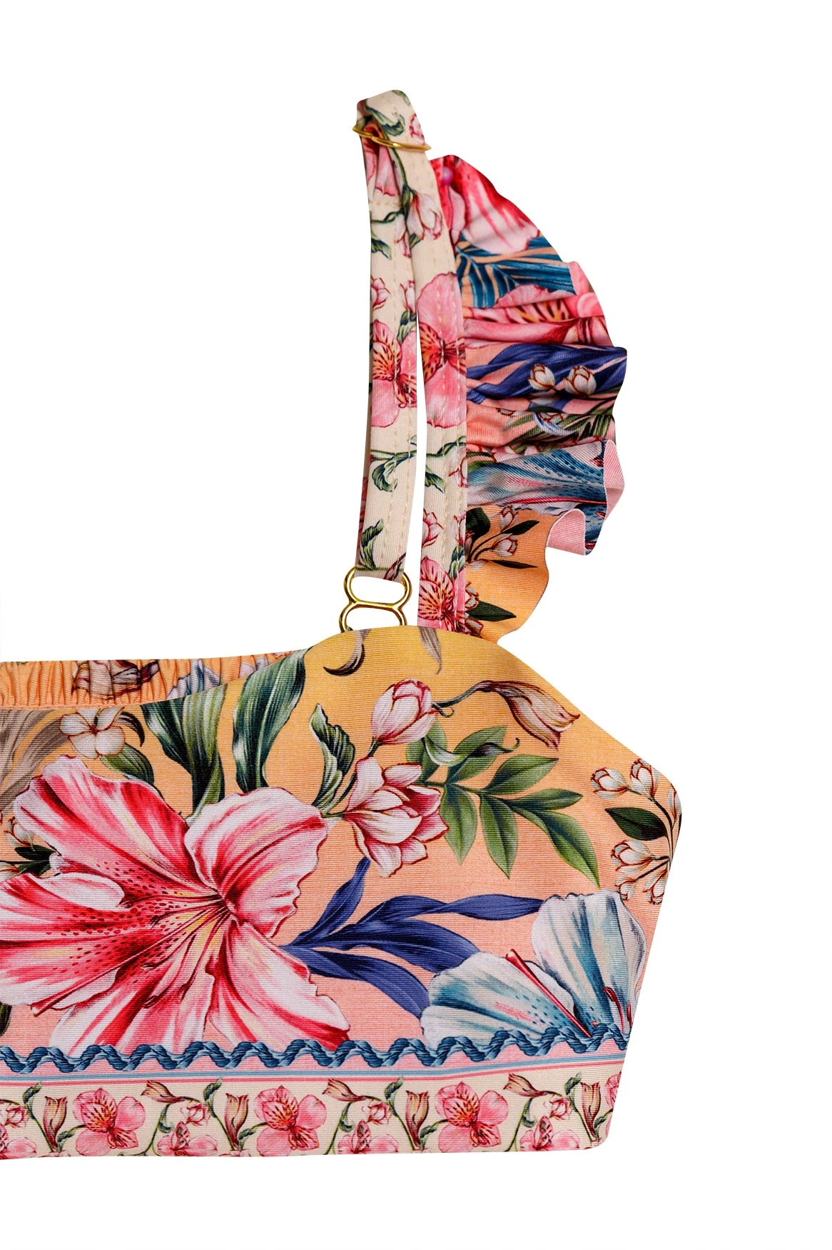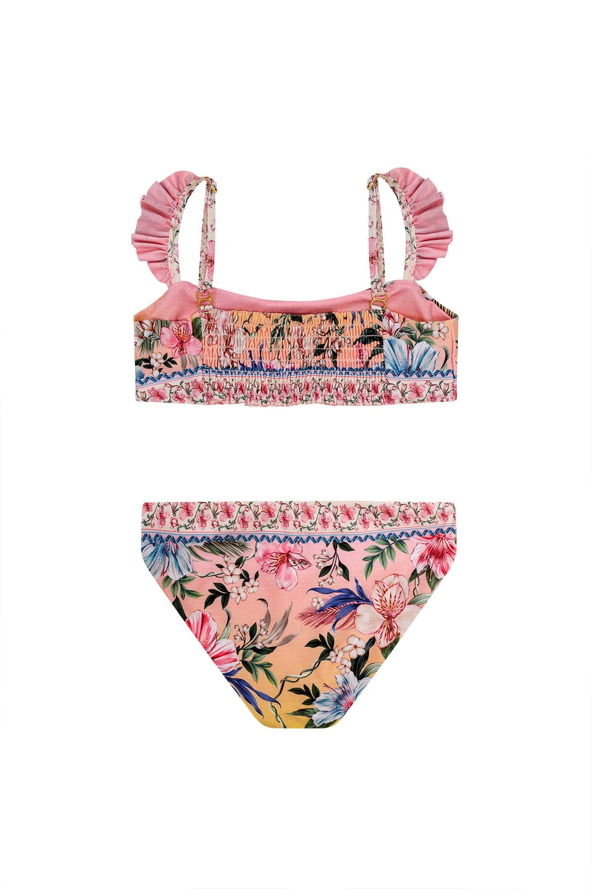 Our Laia Kids Bikini is designed to stay put no matter how active your little one is. The sporty top has a secure fit with back smocking for adjustability, while the ruffled front straps add a playful style that can be adjusted for length.