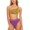 Our best seller and a key look. The Lolita triangle bikini top has special details in its fabric, as it is shiny. Ideal for tanning. You can wear it as a top for a daytime look or as a swimsuit for the beach or pool.