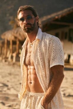 This strappy bottom has a handmade embroidered border and is topped with a narrow twisted rope for a beachy look.