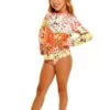 Our Missi Kids Bikini features a bandeau-style top with delicate layers of ruffles. The back of the top has smocking for adjustability to ensure a perfect fit for all-day fun in the sun. The bikini bottom is reversible to another print.