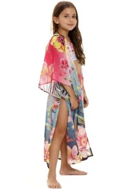 The Salma Kids Tunic is an open-front delight embellished with a twisted rope front tie and finished with drawstring tassels for adjustability. Our colorful cosmic prints and intricate details highlight the entire tunic for a handcrafted look. Your child will look and feel like a little beachside explorer in this charming tunic.