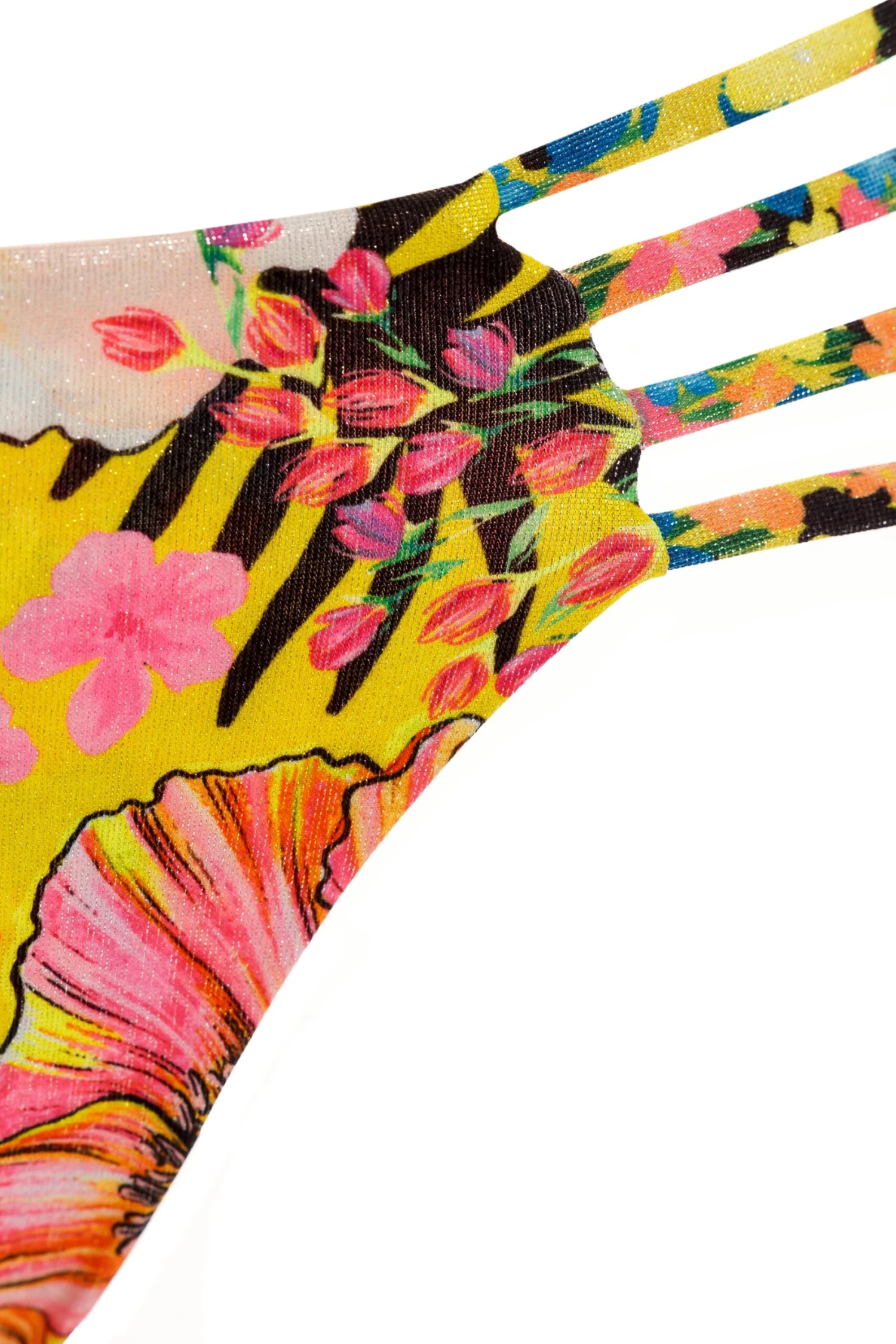 With rows of narrow strapping at the sides, this low-rise bottom offers a relaxed look and soft, smooth edges for a flattering fit. It is made with shimmer eco fabric, features Brazilian coverage, and is perfect for poolside lounging.