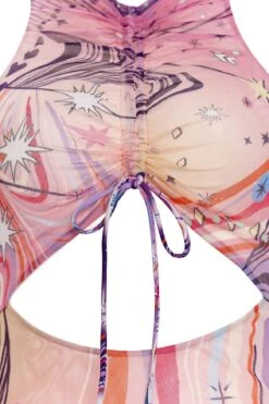 Experience the ultimate summer beach look with our high-neck midi dress, featuring a wide open back that ties at the back neck. The ruching detail down the side adds dimension.