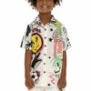 This piece features intricate trim details and an alluring open back, bringing together comfort and chic in one garment. The lively placement print bursts with color, making it a standout piece for any fun outing or casual playdate. The lightweight fabric ensures all-day ease for your little one. Enjoy the blend of function and flair in this delightful dress.