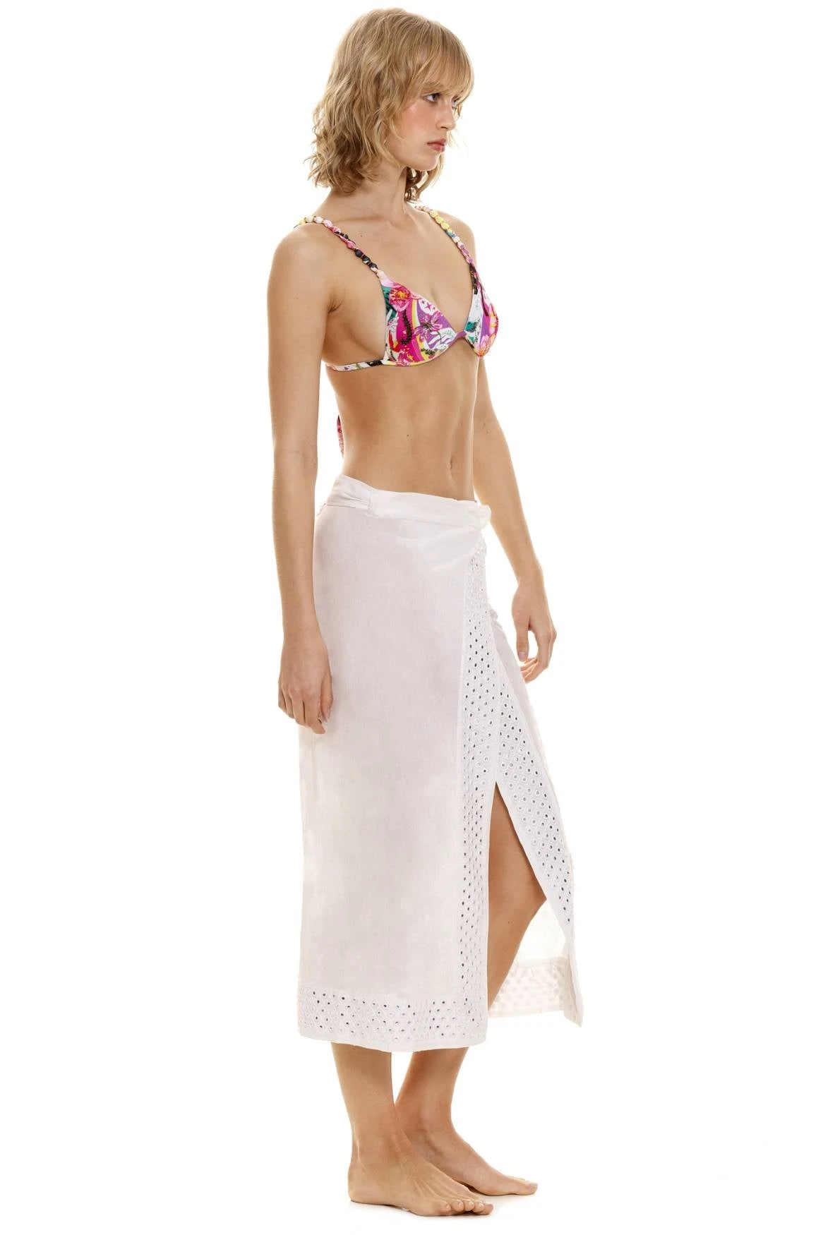 The Zinna Cover-up is an easy, breezy wraparound lace piece that balances perfectly, providing a little coverage and transparency over your swimsuit. This versatile cover-up adds an element of elegance to your beach ensemble, making it a must-have for your next seaside adventure.